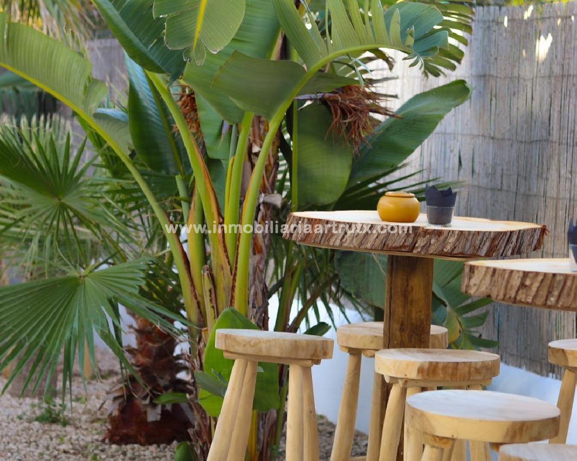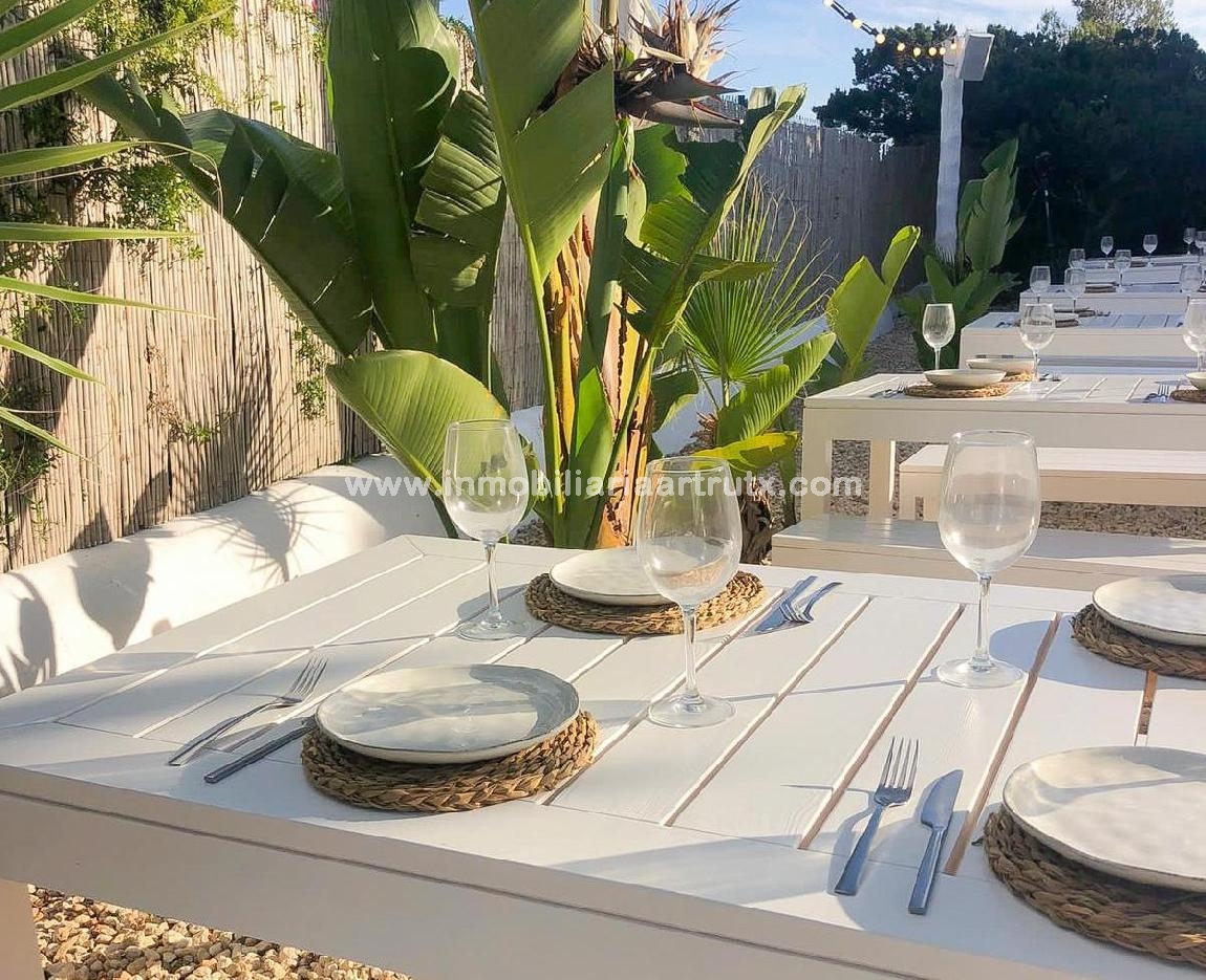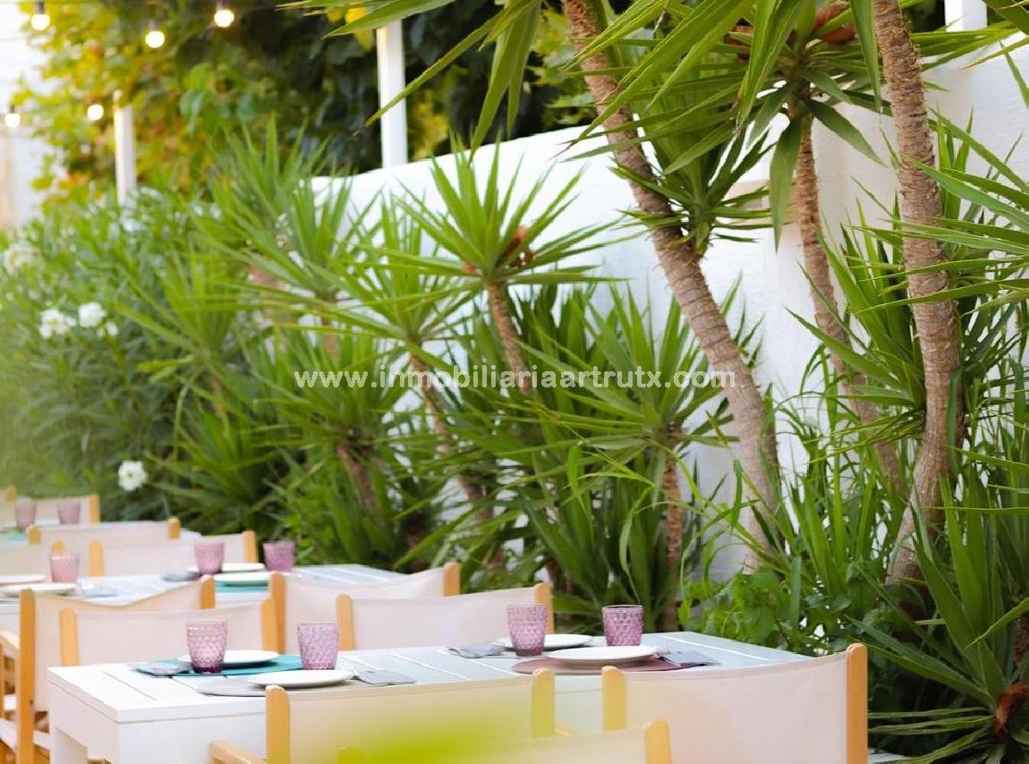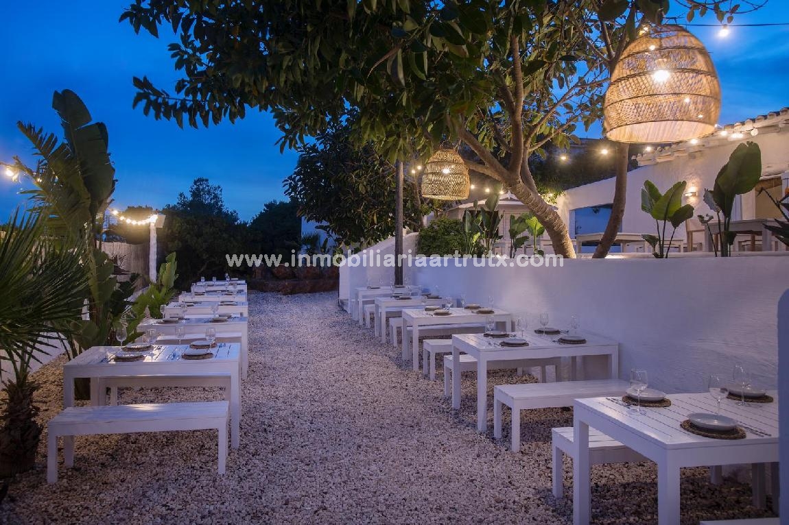 DATOS PRINCIPALES * Superficie construida: 430 m² aprox. * Parcela: más de 1.300 m² * Capacidad exterior: hasta 190 comensales por turno * Amplio jardín tropical con terraza * Cocina profesional completamente equipada * Dos barras operativas (interior y exterior) * Sistema de sonido instalado en interior y exterior * Sistema de alarma * Parcela vallada * Aparcamiento propio * Doble acceso (desde avenida principal y parking) * Ubicación a 500 metros de Cala en Forcat
